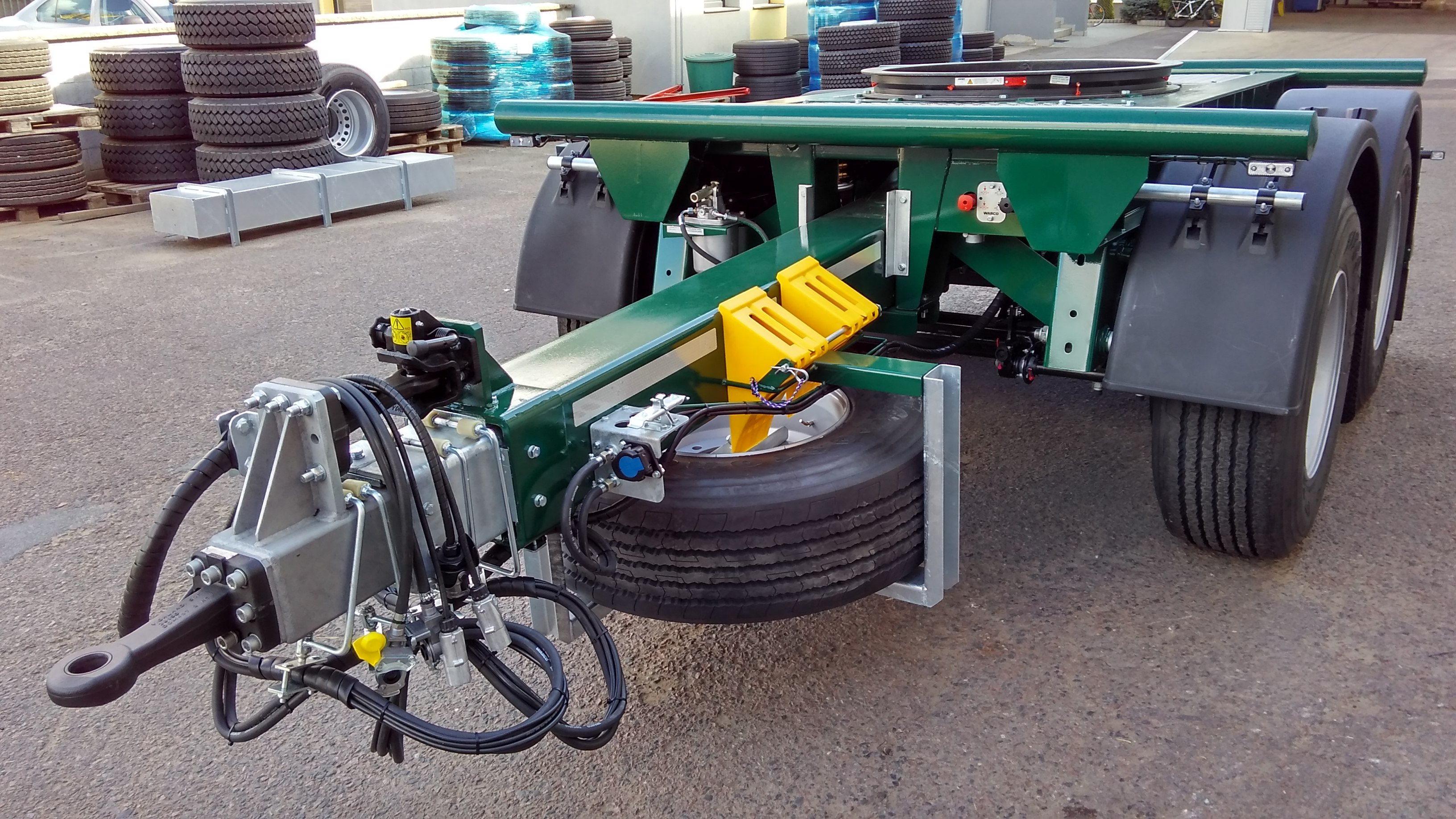 teleskopická třídílná s aretací v zasunuté poloze pomocí oka a hubice, výsuv 4 500 mm, oko 50 mm, přestavování svislé polohy pomocí hydraulického zvedáku |